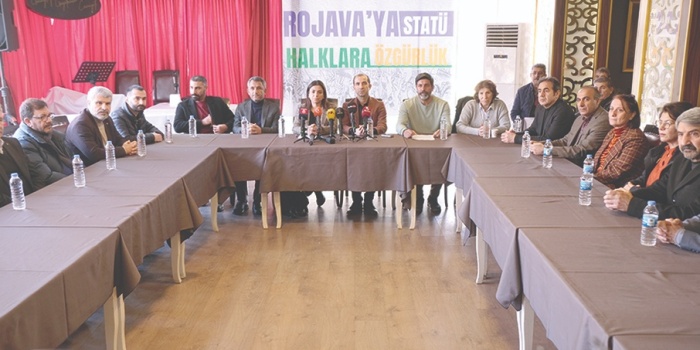 Bi daxwaza ku statûya Rêveberiya Xweser a Bakur û Rojhilatê Sûriyeyê were naskirin, li Amedê kampanyaya îmzeyan a “Ji Rojava re statû ji bo gelan azadî” hat destpêkirin. Deklarasyon, li Cemiyeta Rojnamegeran a Başûrrojhilat (GGC) tê ragihandin. Hevserokê Giştî yê DBP Keskîn Bayindir û gelek nûnerên partiyên siyasî û rêxistinên civaka sivîl jî tev li bûn. Deklarasyona bi Kurdî ji hêla ji hêla Şanogerê Kurd Ozcan Ateş ve hate xwendin û hate gotin:“Sînorên ku bi Şerê Yekemîn ê Cîhanê ve li ser înkara rastiya çandî, civakî û siyasî ya herêmê hatin xêzkirin, li şûna çareseriyê, pirsgirêkên li herêmê mezintir kirin. Statukoya ku di salên dawî de ket meriyete, li Rohilata Navîn rê li ber qeyran û şerên nû vekir. Sedsala borî nîşan da ku, tu hevkêşe û hesabên ku heqîqeta erdnîgariya me înkar dikin, nabin çareserî. Lêgerîna rêveberiyên yekperest, otorîter, dijdemokratîk û înkara gelan esas digire, pirsgirêkên heyî kûrtir dikin. Îro li Rojhilata Navîn desthilatdarên destpotîk yek bi yek hildiweşin û em bi hev re şahidiya vê yekê dikin. Ji bo çareseriya qeyranên Rohilata Navîn rêyek tenê heye. Ev rê jî; pergaleke li ser naskirina çand, bawerî û azadiya gelan hatiye avakirin e.