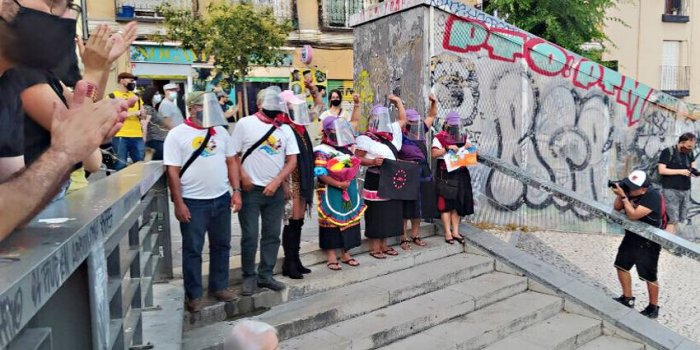 Merasîma pêşwazîkirinê li taxa Lavapiesê pêk hat û bi navê Rojava Azadî Madrîd û Womend Defend Rojava axaftin hatin kirin û hat gotin, "Di 3'ê Tîrmehê roja çalakiyan a global a li dijî dagirkeriyê de li her devera cîhanê çalakiyên Defend Kurdistanê têne lidarxistin."