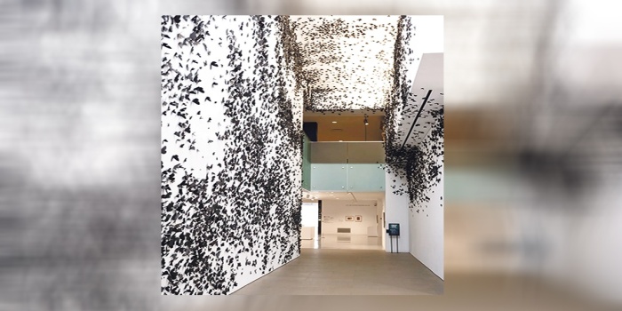 Hunermendê bi navê Carlos Amorales ku ji Mexico City’yê ye bi enstalasyona xwe ya “Black Cloud” (Ewrê Reş) ji dapîra xwe xatir dixwaze. Ev enstalasyona mezin ji 25 hezar perperîkan pêk tê ku hemû jî bi kaxezan hatine çêkirin.