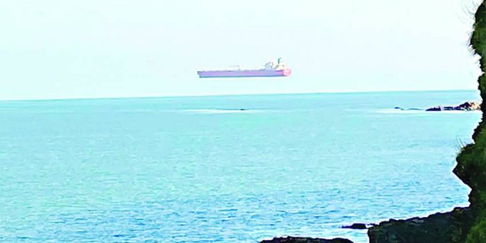 Zilamek ji xwe re li peravên Cornwall ên Ingilîstanê dimeşiya gava ku wî li hemberê xwe di behrê de keştiyeke bar li hewayê dît. Wî -David Morris- wêneyên wê girtin. Lê esas di rastiyê de wêneyên wî tenê îlûzyonekê, xapandina çavên mirovan nîşan didin. Ji vê yekê re “superior mirage” yanî "Leylana li jor" tê gotin. Lê axir keştiyeke bar a evqasî mezin jî çavan baş dixapîne.