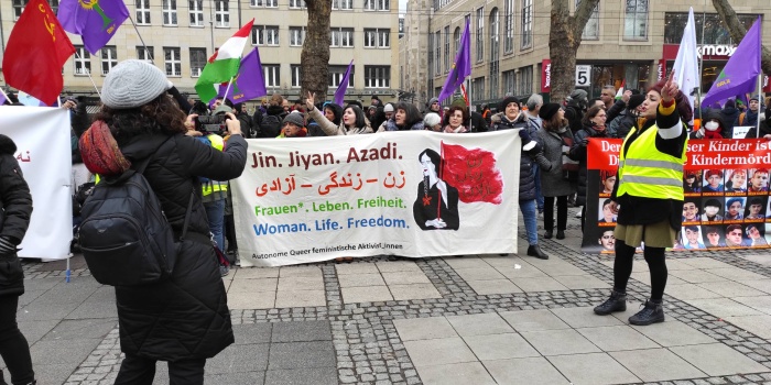 Li bajarê Elmanya Kolnê, dawiya hefteyê piştgiriya bi ´Şoreşa Jin jiyan azadî´ re hebû. Qederê 2 hezar kesî ji Belçîka, Holanda û Elmanyayê tevlî mîtîngê bûn.