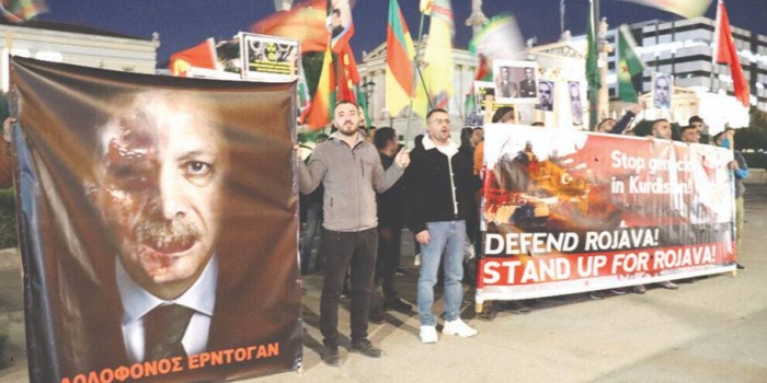 Kurd û dostên wan li paytexta Yewnanistan Atînayê Tayyîp Erdogan protesto kirin ku bi fermî serdana Atînayê kir. Çalakger li Qada Academia hatin ba hev. Înîsiyatîfa Ji Bo Rojava Rabe Ser Piyan, anarşîst û şoreşgerên Tirkiyeyî piştgirî dan çalakiya Kurdan. Di çalakiyê de pankarta “Kujer Erdogan” û “Li Kurdistanê qirkirinê rawestînin” hate vekirin. Her wiha wêneyên Rêber Abdullah Ocalan û alên PKK’ê hatin hildan û bê navber dirûşmeyên “Bijî Serok Apo”, “Ji Ocalan re azadî” û “Bijî berxwedana zindanan” hatin berzkirin. Di çalakiyê de faşîzma Erdogan û tifaqa şer a navneteweyî hate protestokirin û bal hat kişandin ser têkoşîna hevpar a gelan a li dijî êrîşên qirkirinê.