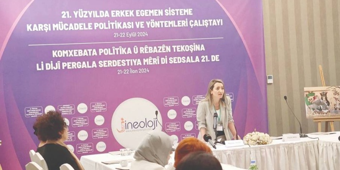 Endama Lijneya Weşanê ya Jineolojiyê Antropolog Derya Aydin derheqê Komxebeta Kovara Jineolojiyê ku bi navê ‘’Di Sedsala 21’ê de Li dijî Pergala Zilamserwer Polîtîkaya Têkoşînê û Rêbazên Wê’’ ku li Wanê hatî lidarxistin axivî.