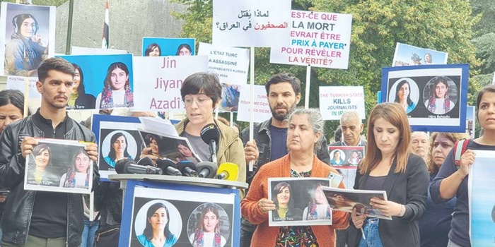 Rojnamevanên Kurd li ber Konsolosiya Iraqê ya Brûkselê suîkasta terorî ya Tirk a li ser rojnamevan Gulîstan Tara û Hêro Bahadîn şermezar kirin û bang li saziyên navnetewî kirin ku li dijî êrîşên li ser rojnamevanan bi berpirsyarî rabin.